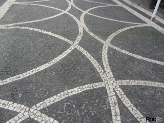 Fotos da calçada portuguesa pela Ilha de São Miguel Maçarocas em calçada Largo da Matriz, Ponta Delgada Friso em calçada Rua dos Mercadores Rua Doctor José Bruno Tavares Carreiro Avenida Infante Dom Henrique Nossa Senhora das Neves 1935 Largo de Gaspar Fructuoso, Ribeira Grande Parque da Ribeira Grande Alice no Pais das Maravilhas Caravela calçada Furnas 1947 Fotos: Roc2c Junho 2016