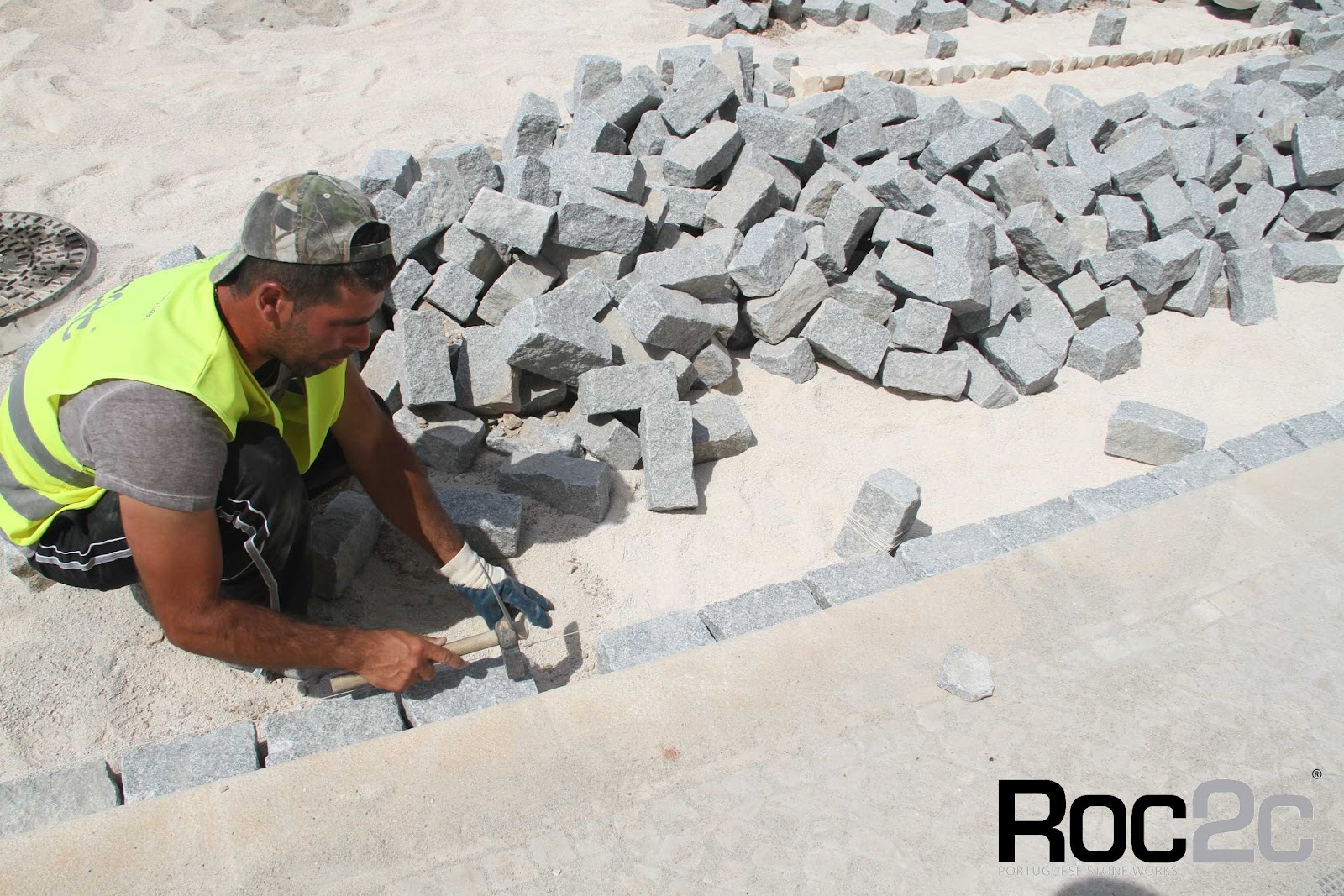 We started on May 7, 2012, a team of four calceteiros, the work of cobblestone paving in one of the busiest avenues in the town of Fatima.
